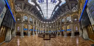 Valores del Ibex en el Palacio de la Bolsa de Madrid.