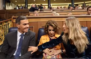 El presidente del Gobierno, Pedro Sánchez, la vicepresidenta primera del Gobierno y ministra de Hacienda, María Jesús Montero, y la vicepresidenta segunda y ministra de Trabajo, Yolanda Díaz, durante una sesión de control al Gobierno, en el Congreso, a 15 - Marta Fernández - Europa Press