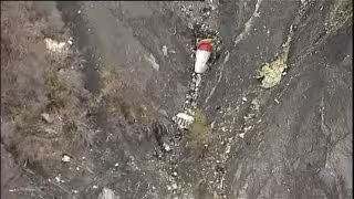 Policías y equipos forenses a pie y en helicópteros registraban el lugar, ubicado aproximadamente a 100 kilómetros al norte de Niza, en que el avión cayó en su camino de Barcelona a Düsseldorf.