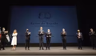 El acto de entrega, que ha tenido lugar en el Auditorio Municipal Maestro Padilla de Almería y ha sido presidido por Felipe IV, ha contado también con la presencia de la vicepresidenta y ministra de Trabajo, Yolanda Díaz.