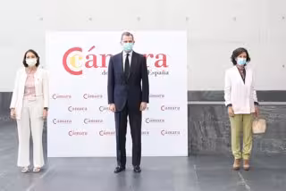 Felipe VI considera que la internacionalización, la transformación digital, la formación y la sostenibilidad deben ser los vectores de crecimiento de la economía española y que será "crucial" el liderazgo de las grandes empresas españolas, que están presentes en el pleno de la Cámara de España y que actúan como tractoras del tejido productivo con el objetivo de alcanzar una economía "más abierta, competitiva y sostenible".