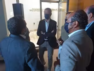 El vicepresidente de la Xunta, Alfonso Rueda,con representantes del sector hostelero y hotelero en Vigo. - EUROPA PRESS