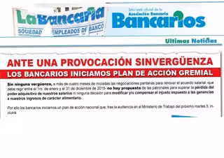 La Asociación Bancaria ha declarado que irá a una huelga de 24 horas en la segunda semana de mayo, ya que no han conseguido un acuerdo por el aumento salarial cuatro meses después de iniciadas las negociaciones, y algunos gremios contemplan adherirse.