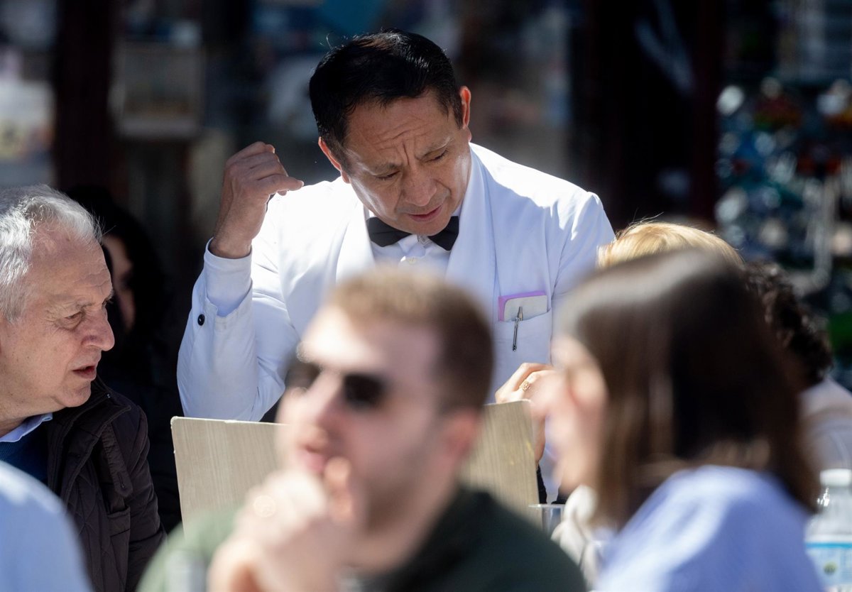 Archivo - Un camarero atiende una mesa en una terraza en el centro de Madrid, a 24 de marzo de 2025, en Madrid (España).