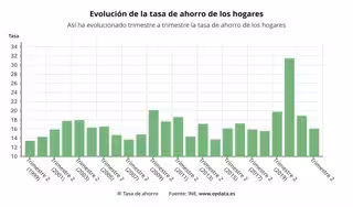 Esta tasa del 16,1% es la más elevada desde el segundo trimestre de 2021, cuando se situó en el 21,1%, lo que significa a su vez que, en comparación interanual, la tasa de ahorro de las familias se ha reducido cinco puntos respecto al mismo trimestre del año pasado.