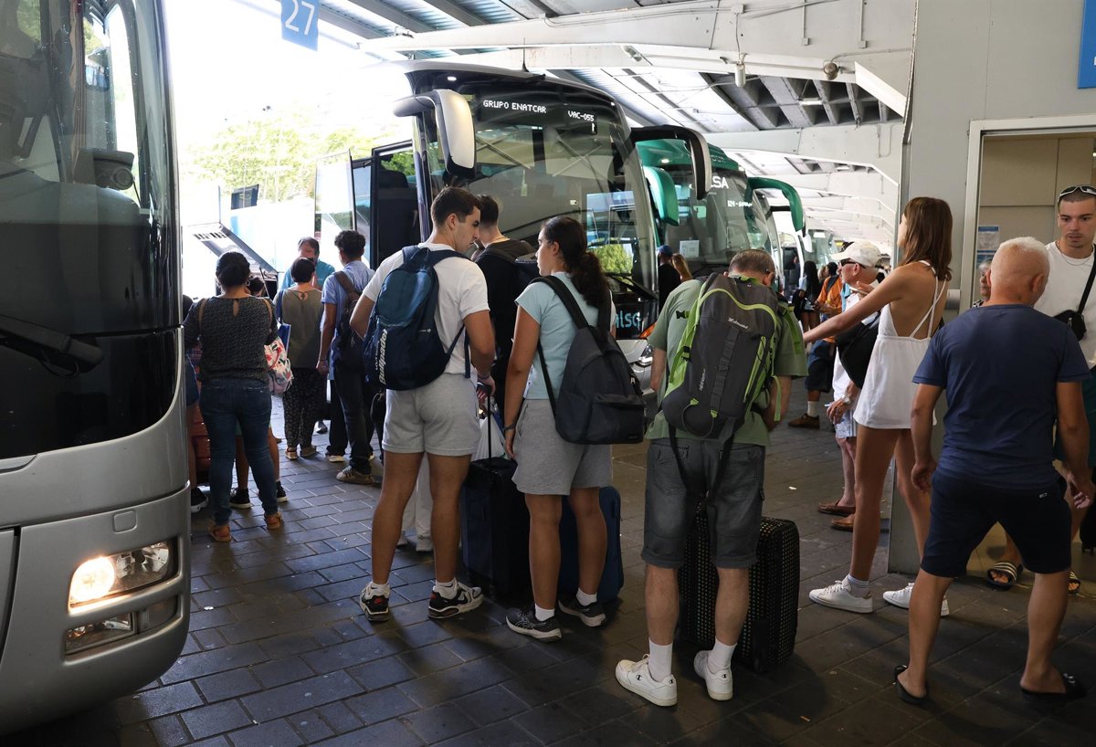 Archivo - Varias personas esperan para subirse a un autobús en la estación de autobuses de Méndez Álvaro, a 2 de agosto de 2024, en Madrid (España). Las empresas de autobuses han reforzado todos sus servicios en más de un 45% para atender el crecimiento d - Marta Fernández Jara - Europa Press - Archivo