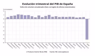 La economía española acusó el impacto de la crisis del coronavirus y retrocedió un 5,2% en el primer trimestre, su mayor desplome trimestral registrado en la serie histórica del Instituto Nacional de Estadística (INE), que arranca en 1970. Hasta ahora, la mayor caída trimestral del PIB era la del primer trimestre de 2009 (-2,6%).