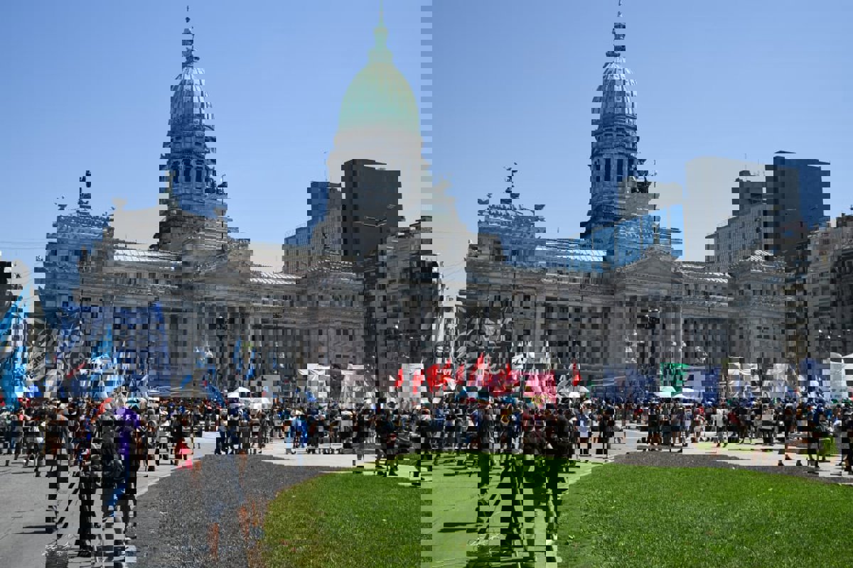 Archivo - Manifestación contra la reforma laboral, frente al Congreso argentino, a 27 de febrero de 2026, en Buenos Aires (Argentina). La manifestación se produce en rechazo a la nueva norma laboral impulsada por el gobierno de Javier Milei que pretende i - Sebastián Hipperdinger - Europa Press - Archivo