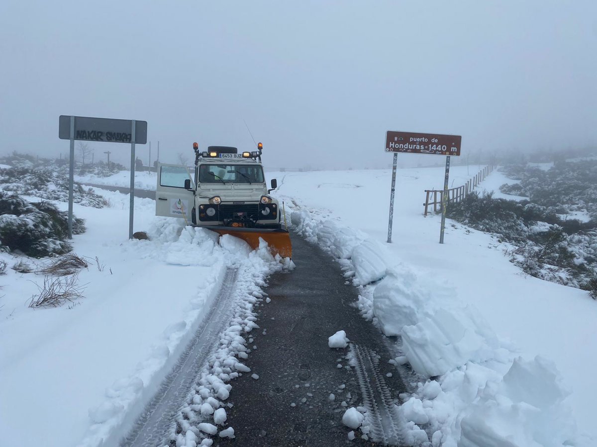 Pick-up quitanieves actúan en la zona del Puerto de Honduras afectada por la borrasca 'Nelson'