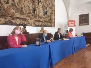 Zurita ha estado acompañado por el rector de la USAL, Ricardo Rivero; la presidenta de Patrimonio Nacional, Llanos Castellanos; y la autora de la edición crítica y catedrática de Literatura Hispanoamericana de la USAL, Francisca Noguerol.
