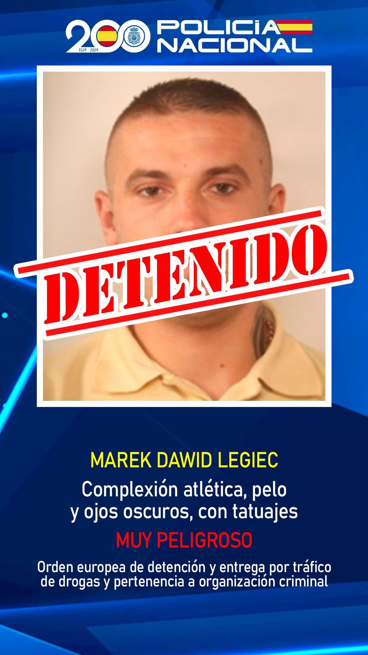 En concreto, le constaba una Orden Europea de Detención y Entrega emitida por Polonia por pertenencia a organización criminal y tráfico de drogas ya que presuntamente lideraba una red internacional de estupefacientes con ramificaciones en, al menos, España, Polonia y Alemania.