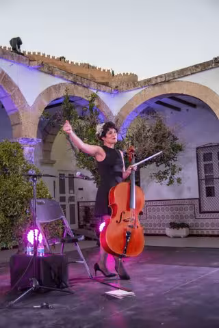 El patrimonio se ha unido a la magia que se respira cada año en Alamar, como preludio de un verano musical. El precioso Patio de los Naranjos del Cuartel de la Misericordia, con el fondo de la Alcazaba de Almería, ha sido el decorado que ha enmarcado la actuación de Ana Carla Maza, una violonchelista de origen cubano y que reside en Barcelona, con una sensibilidad especial, que siente la música desde la cuna y que ha compartido con los almerienses un viaje imaginario por América Latina.