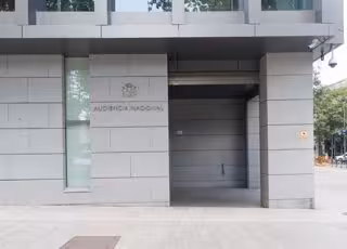 Entrada de la Audiencia Nacional, a 7 de julio de 2023, en Madrid (España). La Audiencia Nacional tiene su sede en Madrid  y es un órgano jurisdiccional único en España con jurisdicción en todo el territorio nacional, constituyendo un Tribunal centraliz