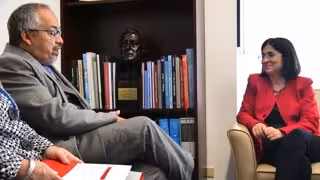 La ministra de Sanidad, Carolina Darias, se reúne con el director de ONUSIDA en Nueva York, César Núñez. En Nueva York (Estados Unidos), a 7 de marzo de 2023.