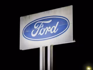 FILED - 08 December 2025, North Rhine-Westphalia, Cologne: A logo of the car manufacturer Ford can be seen on a large sign of the Ford plant in Cologne. Photo: Thomas Banneyer/dpa