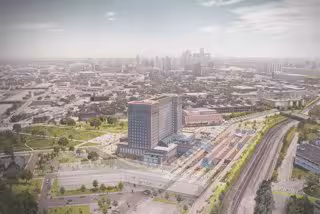 Con una extensión de unos 120.000 metros cuadrados, el proyecto prevé una comunidad transitable, anclada por la estación de tren. Dará prioridad a las necesidades de los residentes y de los negocios, así como a los 5.000 empleados que trabajan allí.