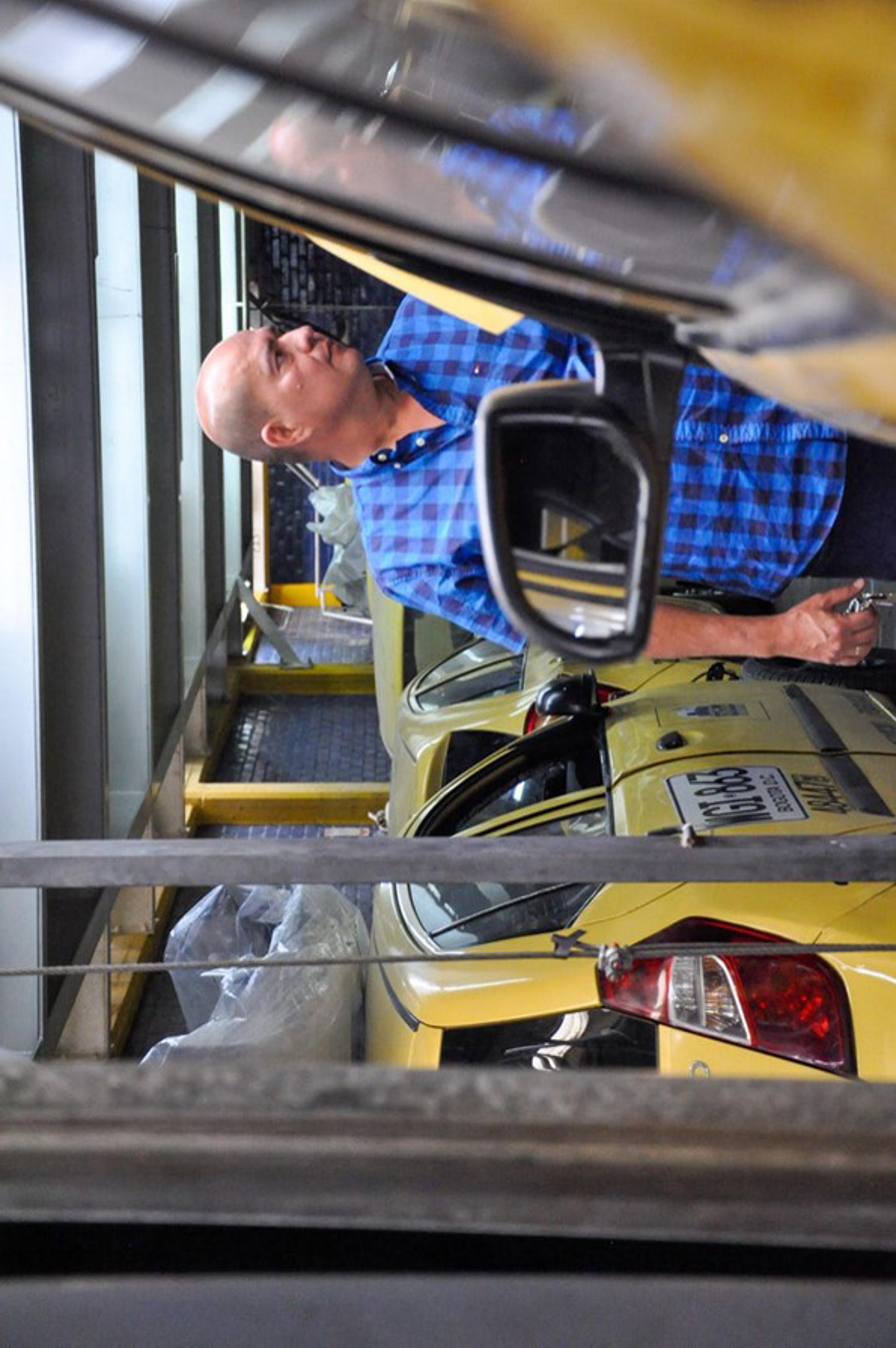 Gibrán Muñoz, socio de Admiservicio Muñoz, supervisando el taller de taxis ubicado al noroccidente de la capital colombiana.