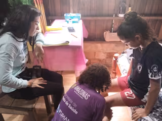 La especialista salió de Manaos, la ciudad más cercana, en una lancha rápida. Tras 14 horas de viaje por el río Madeira hasta el municipio de Manicoré, se unió al equipo local a bordo de la embarcación de Saúde Indígena.
