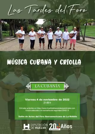 Por otro lado, el viernes, 4 de noviembre, el espectáculo de la música cubana y criolla vendrá de la mano del grupo 'La Cubanía'. Grupo de Huelva dedicado a la música cubana y que nació con el objetivo de dar difusión a toda la música sudamericana en general y a la cubana en particular.