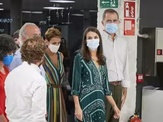 La reina Letizia vista este lunes las localidades navarras de Milagro y San Adrián para inaugurar el curso escolar 2020-2021, acompañada por la presidenta del Gobierno de Navarra, María Chivite, y la ministra de Educación y Formación Profesional, Isabel Celáa.