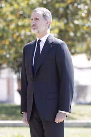 Con Leonor situada a la derecha de su padre, como establece el protocolo para mostrar su condición de heredera, los cuatro han escuchado el toque de oración y han guardado el minuto de silencio manteniendo la distancia de seguridad que establecen las normas sanitarias, lo que les ha permitido estar sin mascarilla. Junto al edificio estaba también convocado personal de la Casa del Rey.