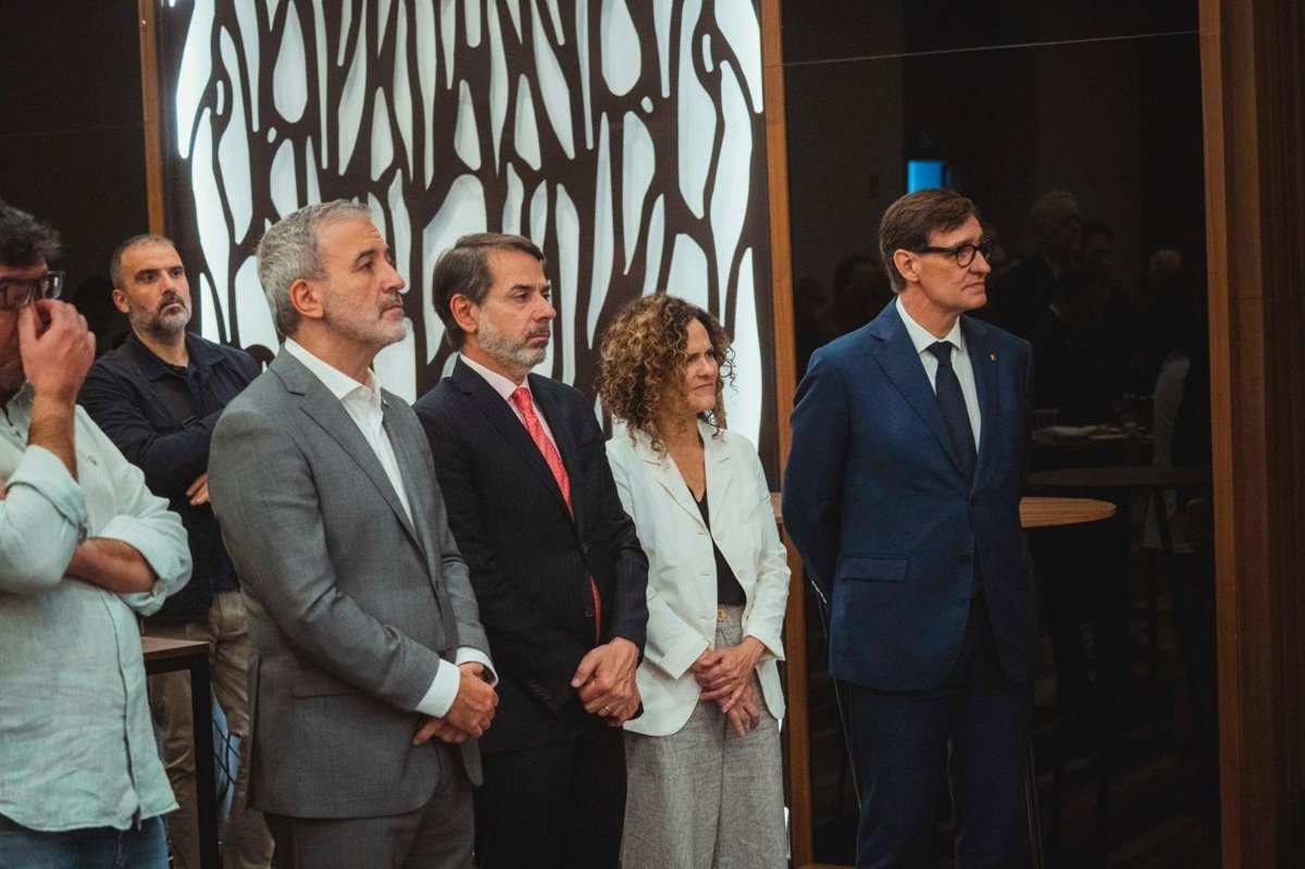 El alcalde de Barcelona, Jaume Collboni, y el presidente de la Generalitat, Salvador Illa, durante un desayuno con editores en Guadalajara, México