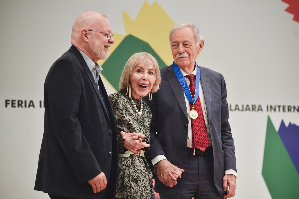 El presidente de la FIL José Trinidad Padilla López, SIlvia Lemus y Eduardo Mendoza - ALEJANDRO ACOSTA/AYUNTAMIENTO DE BARCELONA