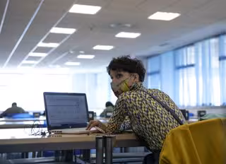 Un estudiante en la biblioteca de la facultad de Comunicación de la Universidad de Sevilla, durante el inicio de las clases de forma escalonada. En Sevilla, (Andalucía, España), a 05 de octubre de 2020.