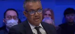 El director general de la Organización Mundial de la Salud (OMS), Tedros Adhanom Ghebreyesus, en la jornada 'Acabar con la tuberculosis: ¿cómo lograrlo?', en el Foro Económico Mundial de Davos (Suiza), a 17 de enero de 2023. - FORO ECONÓMICO MUNDIAL DE DAVOS