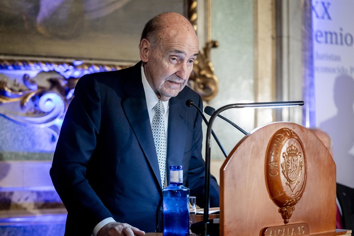 Archivo - El ponente de la Constitución Miquel Roca Junyent, interviene durante el acto de entrega del ‘XXX Premio Pelayo’ para juristas de reconocido prestigio, en el Real Casino de Madrid, a 14 de noviembre de 2024, en Madrid (España). Pelayo Mutua de S - A. Pérez Meca - Europa Press - Archivo