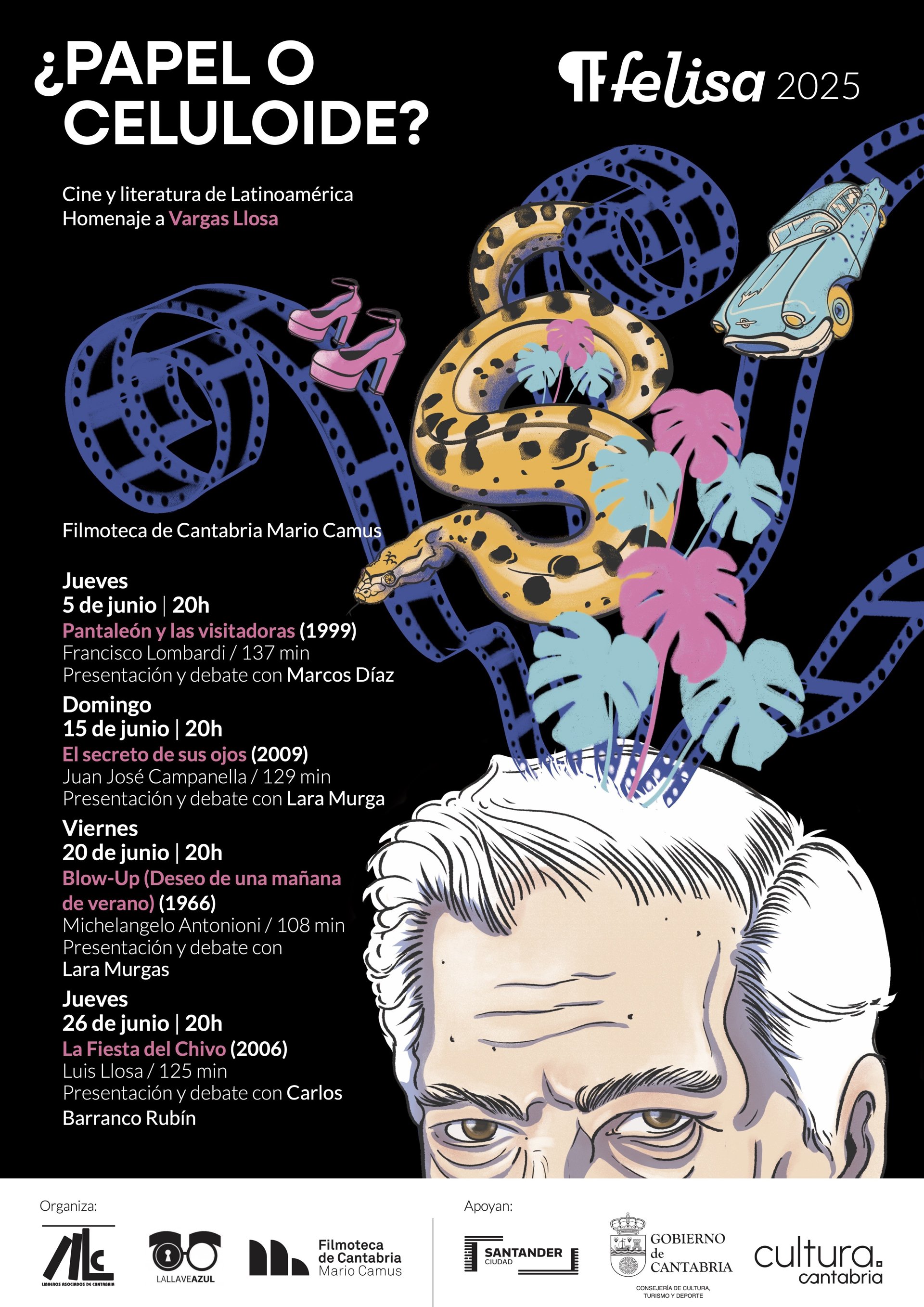 La Feria del Libro de Santander y Cantabria, Felisa, ofrecerá este jueves, antes de arrancar su edición de 2025, el ciclo '¿Papel o celuloide?', centrado en el cine y literatura de Latinoamérica y que este año rinde homenaje a Mario Vargas Llosa, el premio Nobel peruano que falleció el pasado 13 de abril.