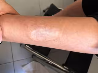 El paciente presentaba dos lesiones dérmicas profundas de cuatro centímetros de diámetro en ambas piernas que en un principio se atribuyó a una caída de un bicicleta.