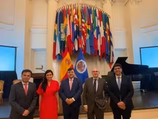 Posteriormente, la delegación onubense tuvo la oportunidad de divulgar Binómico en el acto conmemorativo del 50 aniversario de la presencia de España como país observador en la Organización de Estados Americanos (OEA), invitados por la embajadora de España ante este organismo, Carmen Montón; y el secretario de estado para Iberoamérica, y el Caribe y el Español en el Mundo, Juan Fernández Trigo.