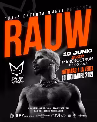 Rauw Alejandro actuará el 10 de junio de 2022 en Marenostrum Fuengirola, en esta localidad malagueña; una fecha exclusiva en Andalucía dentro de la gira mundial del artista puertorriqueño. Las entradas para este concierto estarán a la venta desde el 13 de diciembre en www.marenostrumfuengirola.com.
