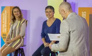 Ángeles Reiné llega a la sección Talento Andaluz del Festival de Huelva de Cine Iberoamericano, donde competirá por el Premio Juan Ramón Jiménez con la película 'Héroes de barrio'. Acompañada por la actriz Lisi Linder, Reiné ha presentado este domingo en la Casa Colón el largometraje, que se proyecta a la tarde en el Gran Teatro. La película lanza un mensaje por la igualdad a través la historia de una niña que sueña con jugar en la Selección española de fútbol.