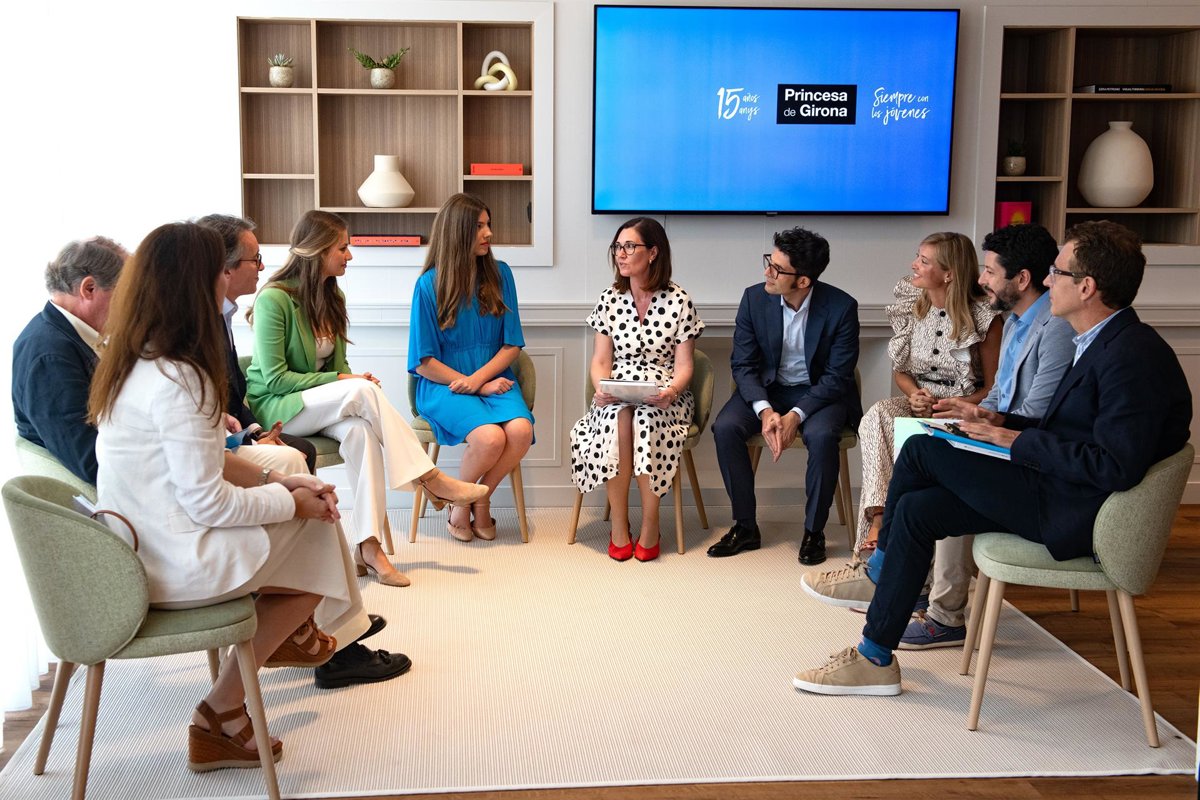 Archivo - La Princesa Leonor (3i) y la Infanta Sofía (4i) durante un encuentro con el Consejo Asesor Joven de la Fundación Princesa de Girona (FPdGi), en el hotel Meliá, a 10 de julio de 2024, en Lloret de Mar, Girona, Catalunya (España). Los Premios Prin - Glòria Sánchez - Europa Press - Archivo