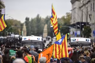 En este punto, la manifestación de los CDR se ha juntado con los convocados por mnium y ANC, y varias personas han quemado fotos del presidente y el Rey durante su presencia en el acto.