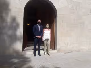 El presidente del Gobierno, Pedro Sánchez, ha sido recibido en las puertas del Consolat por la presidenta del Govern, Francina Armengol, para reunirse y analizar la situación de las Islas.