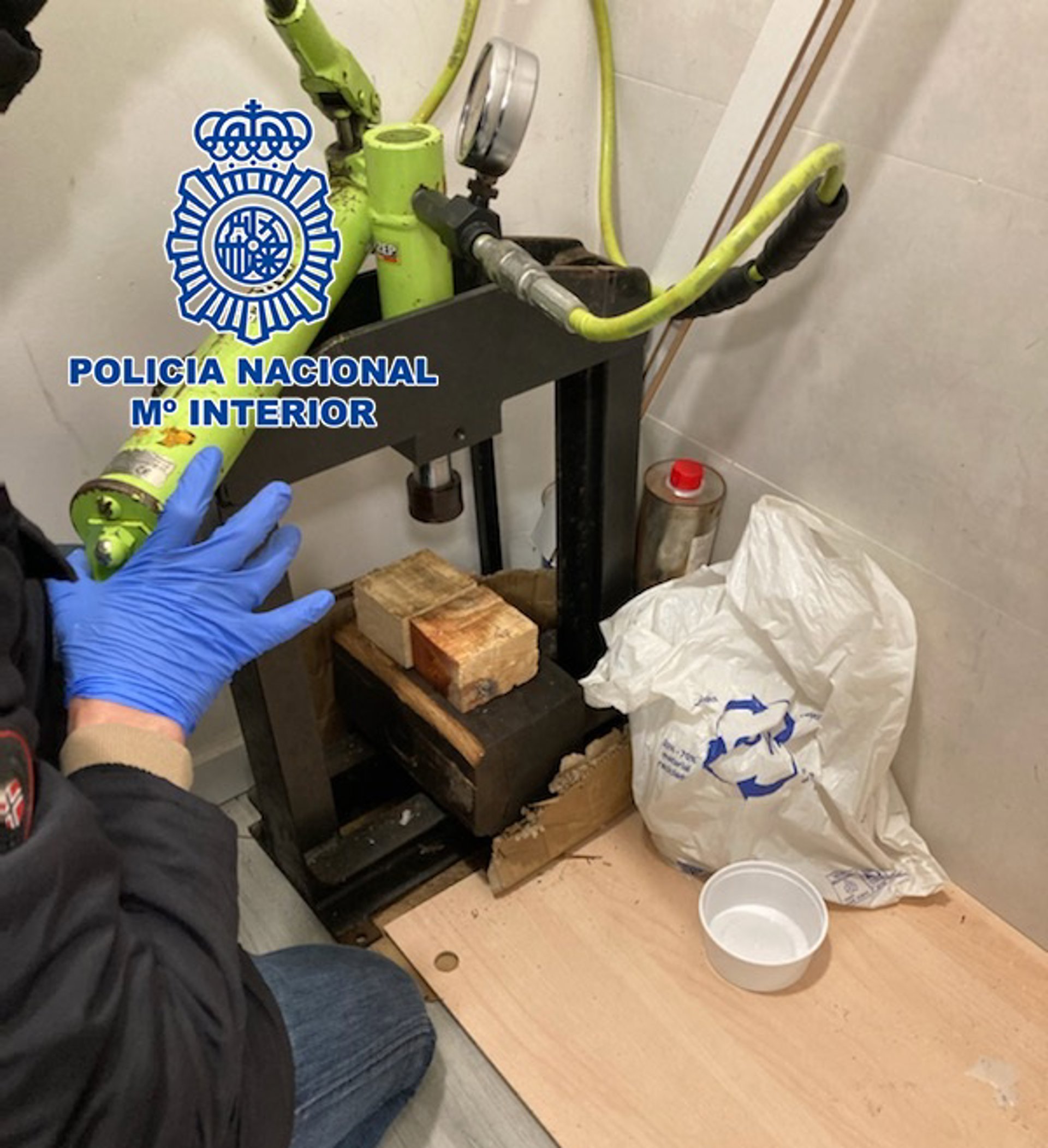 Como resultado, intervinieron 300 gramos de cocaína ya dispuesta para su distribución en varias tabletas, 640 gramos de sustancia de corte y 1,9 litros de precursores químicos como hexano, acetona y disolventes, entre otros. Asimismo, se localizaron numerosos útiles y utensilios que evidenciaban la existencia de un auténtico laboratorio clandestino.