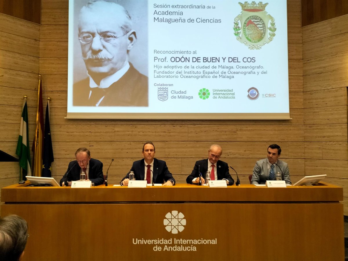 La Universidad Internacional de Andalucía (UNIA) ha acogido en su Sede Tecnológica de Málaga un acto académico en homenaje a Odón de Buen y del Cos (Zuera, España 1863 - Ciudad de México, 1945), fundador del Instituto Español de Oceanografía (IEO), del Laboratorio Oceanográfico de Málaga y académico de Honor de la Academia Malagueña de Ciencias (AMC).