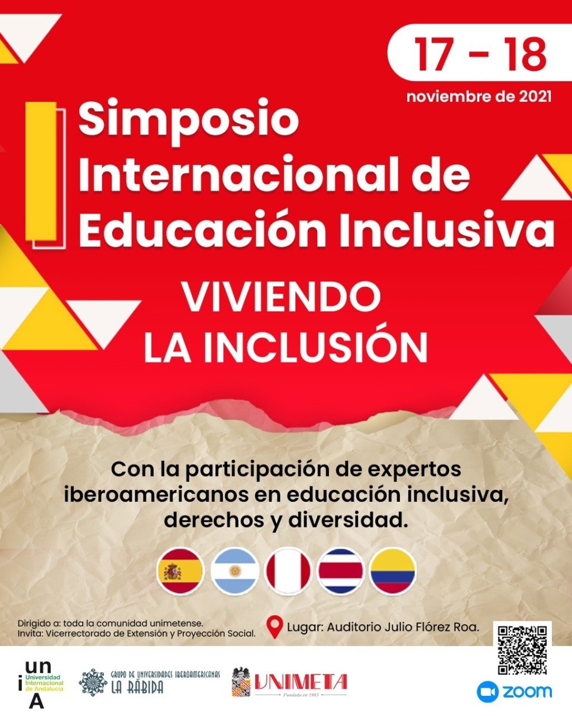 Cartel del simposio internacional sobre educación inclusiva, organizado por la Universidad del Meta y el Grupo La Rábida. - UNIA.