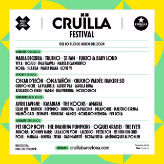El Festival Cruïlla cuenta para la edición de este año con artistas como Pet Shop Boys, The Smashing Pumpkins, Avril Lavigne, Kasabian, The Kooks, María Becerra y Amaral, entre otros.