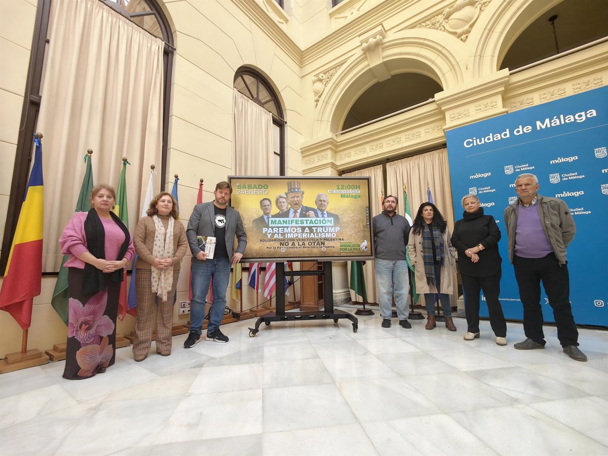 El concejal y portavoz del grupo municipal Con Málaga (Podemos e Izquierda Unida), Nicolás Sguiglia, junto a representantes de las organizaciones que integran la Plataforma Málaga por la Paz, ha convocado a la ciudadanía malagueña a la manifestación que va a tener lugar este sábado, 24 de enero, a las 12.00 horas, en calle Alcazabilla, bajo el lema "Paremos a Trump y al imperialismo. Solidaridad con Venezuela y Palestina. No a la OTAN. Por la paz y contra el rearme y la guerra".