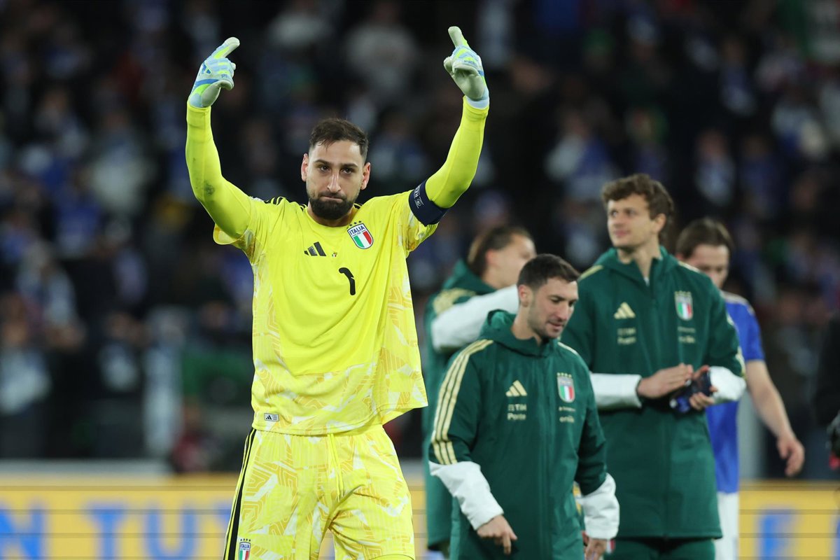 March 26, 2026, Bergamo, Italy: Bergamo, Italy - March 26, 2026: Gianluigi Donnarumma (Goalkeeper) of Italy celebrate victory at end of the football match FIFA WORLD CUP - European Qualifiers PlayOff - Italy vs Northern Ireland at New Balance Arena stadiu - Europa Press/Contacto/Marco Iacobucci