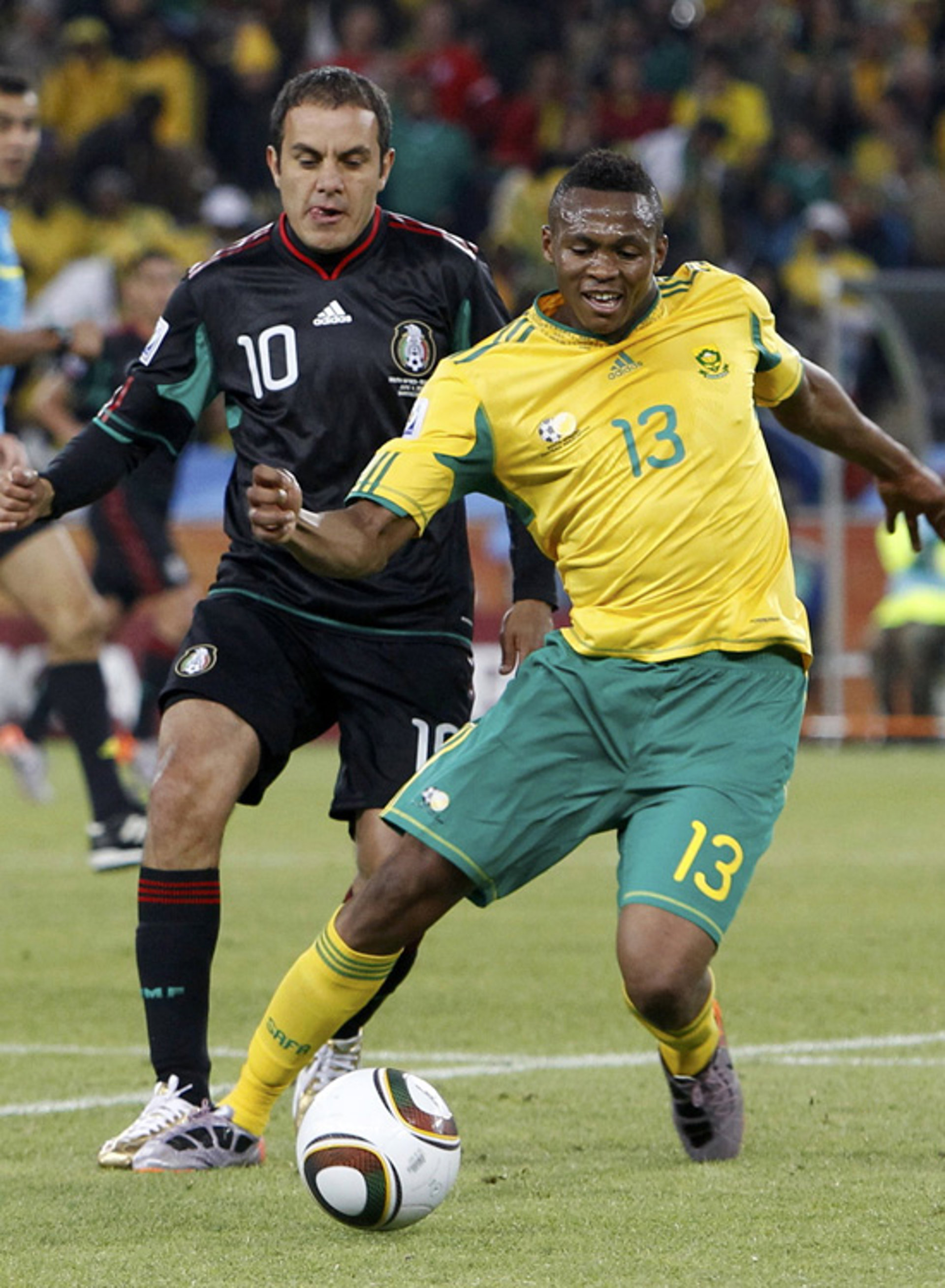 Diferente suerte corrió el guardameta mexicano a los diez minutos de la reanudación. Tras una fase de tanteo, Dikgacoi encendió un contaataque con un exquisito pase interior a Tshabalala. El atacante se plantó frente Pérez un poco escorado a la izquierda, pero soltó un zapatazo que embistió la red por la escuadra contraria. El primer gol del Mundial, empujado por miles de 'vuvuzuelas'.