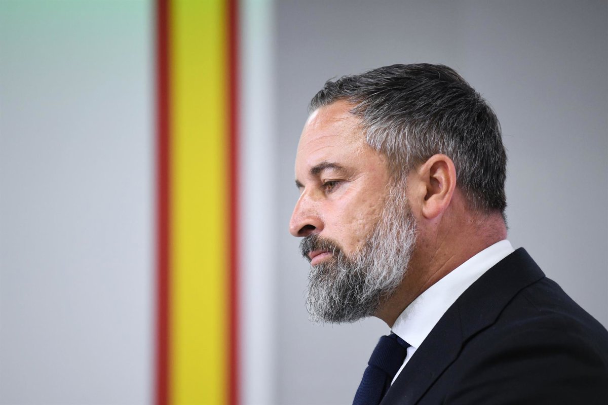 El presidente de Vox, Santiago Abascal comparece ante los medios en la sede del partido.