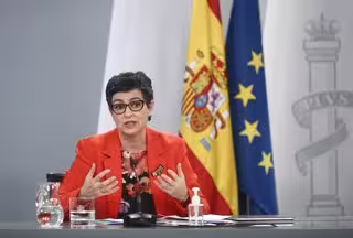 La ministra de Asuntos Exteriores, UE y Cooperación, Arancha González Laya, inteviene en una rueda de prensa posterior al Consejo de Ministros, a 27 de abril de 2021, en el Complejo de la Moncloa, Madrid, (España). Durante la convocatoria informarán, en - EUROPA PRESS/E. Parra. POOL - Europa Press