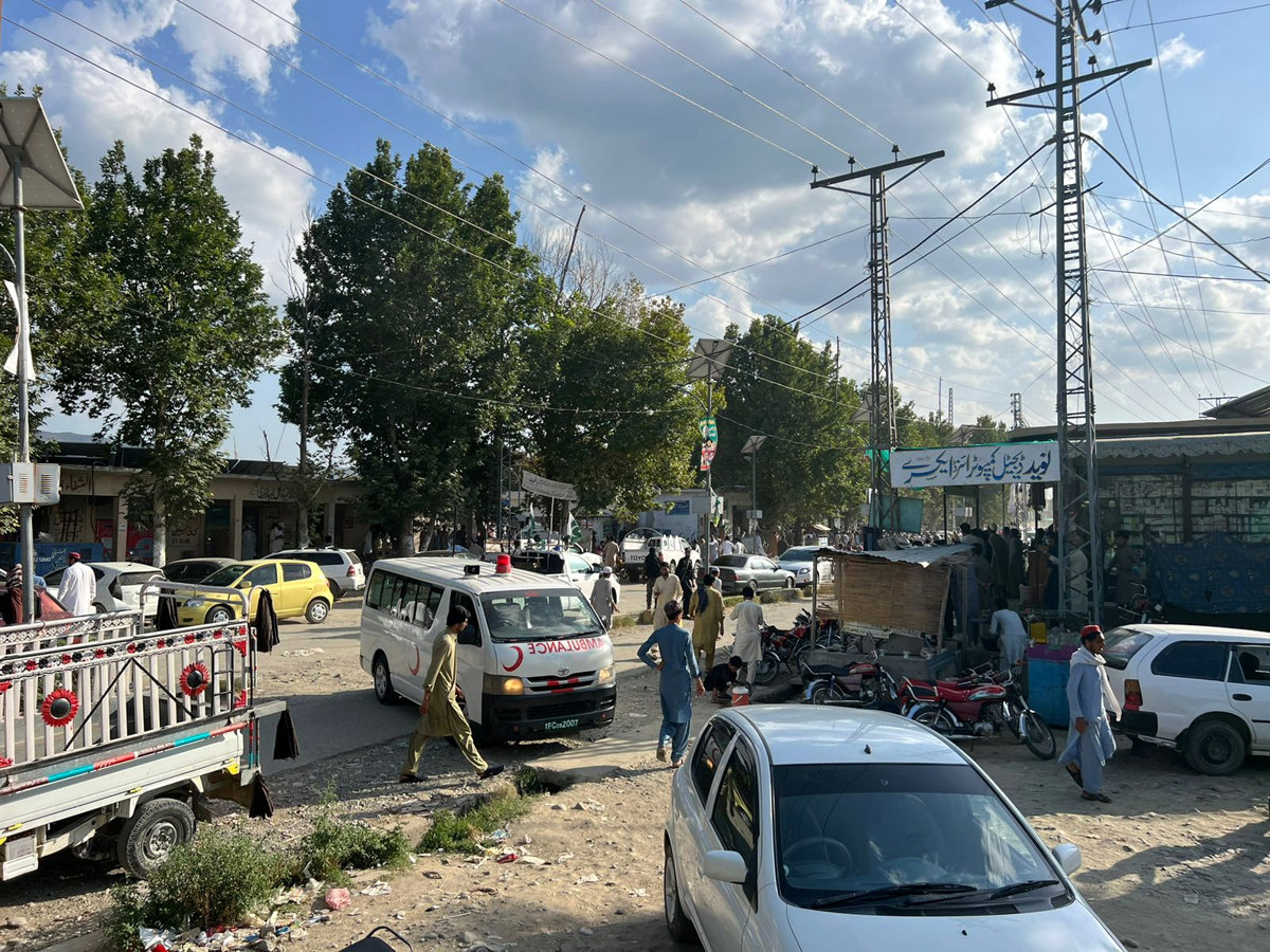 Archivo - BAJAUR, July 30, 2023  -- This photo taken with a mobile phone shows an ambulance arriving at the blast site in Pakistan's northwest Bajaur district on July 30, 2023. A bomb blast hit a political rally on Sunday afternoon in Pakistan's northwest
