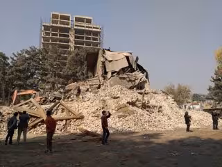 10 November 2020, Afghanistan, Kabul: The "Park Cinema" theatre building is being demolished. The decision of Kabul city council to demolish the historic cinema has triggered sharp criticism among filmmakers. Photo: Hesam Hesamuddin/dpa - Hesam Hesamuddin/dpa