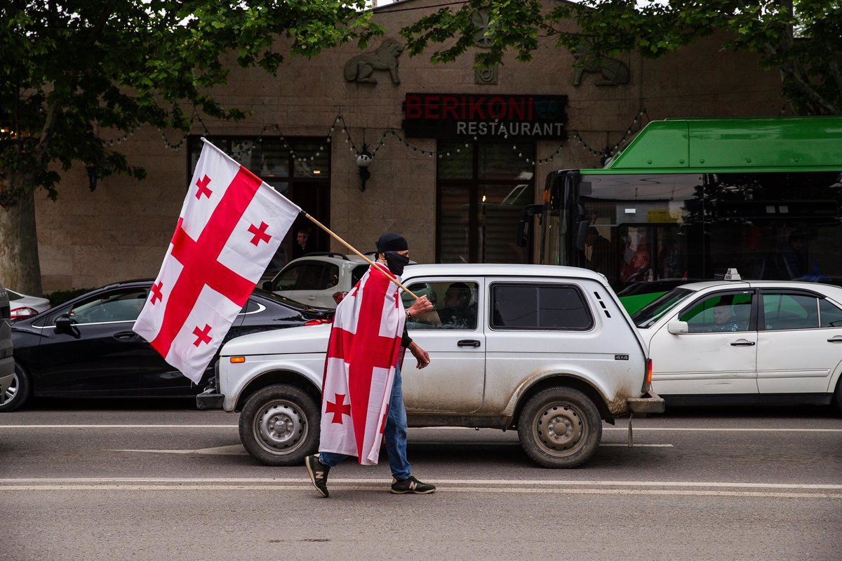 Archivo - Imagen de archivo de un manifestante con varias banderas de Georgia. - Europa Press/Contacto/Ilya Vaga - Archivo
